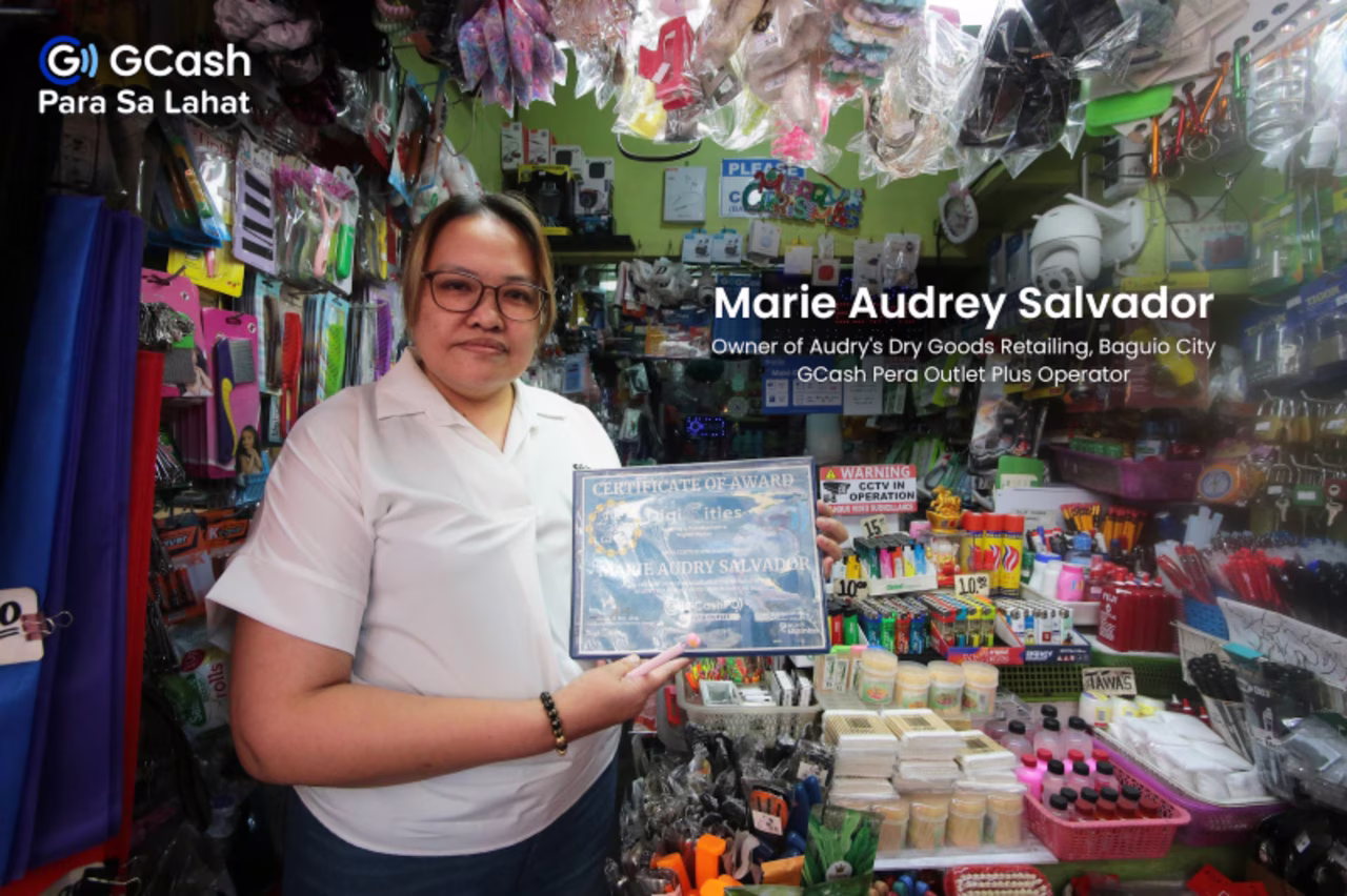 Through the GCash Pera Outlet Plus app, Marie Audrey Salvador transformed her Baguio market stall into a cashless digital financial hub, elevating her family's quality of life. Where she once struggled to make ends meet, the steady income now allows her to comfortably cover rent, pay bills, and finally take her loved ones on well-deserved vacations. Today, her store is a recognized financial lifeline at the heart of the palengke (public market), proving that embracing digitalization can unlock a secure and thriving future.